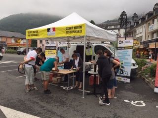 Le stand mis en place, à Bagnères-de-Bigorre, par la coordination sécurité routière de la Préfecture, à proximité de l'arrivée le 18 juillet 2019 et sur le parcours à Luz-Saint-Sauveur, place du 8 mai le 20 juillet 2019 a été animé par des les membres du bureau de la sécurité routière et des Intervenants Départementaux de Sécurité Routière (IDSR).