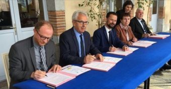 M. Brice Blondel, préfet des Hautes-Pyrénées, M. Pierre Aurignac, procureur de la République, M. Michel Pélieu, président du conseil départemental, M. Gérard Clavé, président de l'association des maires ruraux du département et Mme Ginette Curbet, représentant Mme Viviane Artigalas, présidente de l'association des maires du département, ont signé le document général d'orientation (DGO) de la sécurité routière pour la période 2018-2022.