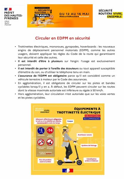 Dans ce cadre, le bureau de la securite routiere de la prefecture, accompagne par M. Alain Verger, responsable du service regional des mobilites pour les Hautes-Pyrenees a participe le 13 mai a une action de sensibilisation destinee aux collegiens de Loures-Barousse.