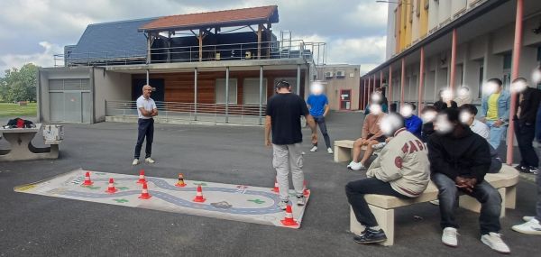 - 2eme groupe : en salle, sensibilisation sur l accidentalite, l equipement et la trajectoire de securite des 2rm* (deux roues motorises).
